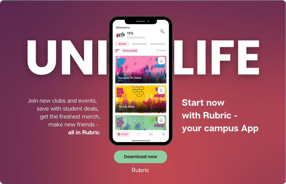 Join new clubs and events, save with student deals, get the freshest merch, make new friends. All in Rubric.